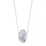 Sautoir avec pierre naturelle Howlite blanche et chaîne cheval argent platiné